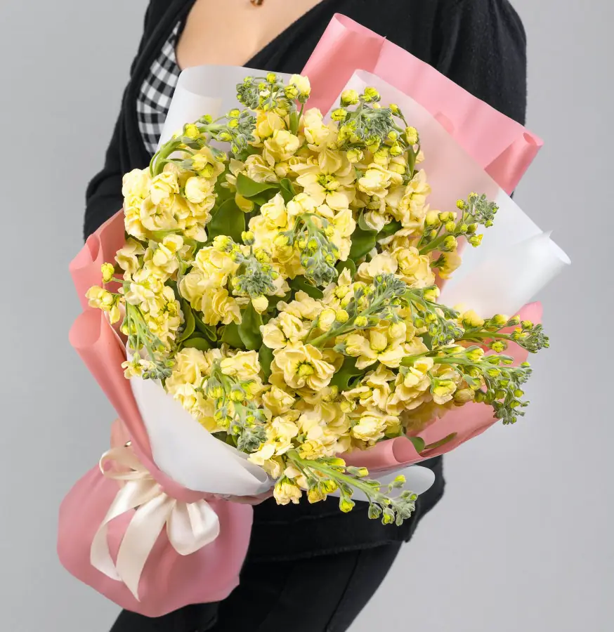 15 Желтых Маттиол в упаковке — отличный выбор для подарка! На сайте вы найдете красочные фотографии, которые помогут сделать выбор. Цена букета — 4400 руб.. Закажите 15 Желтых Маттиол в упаковке с доставкой в Дзержинске и по области.