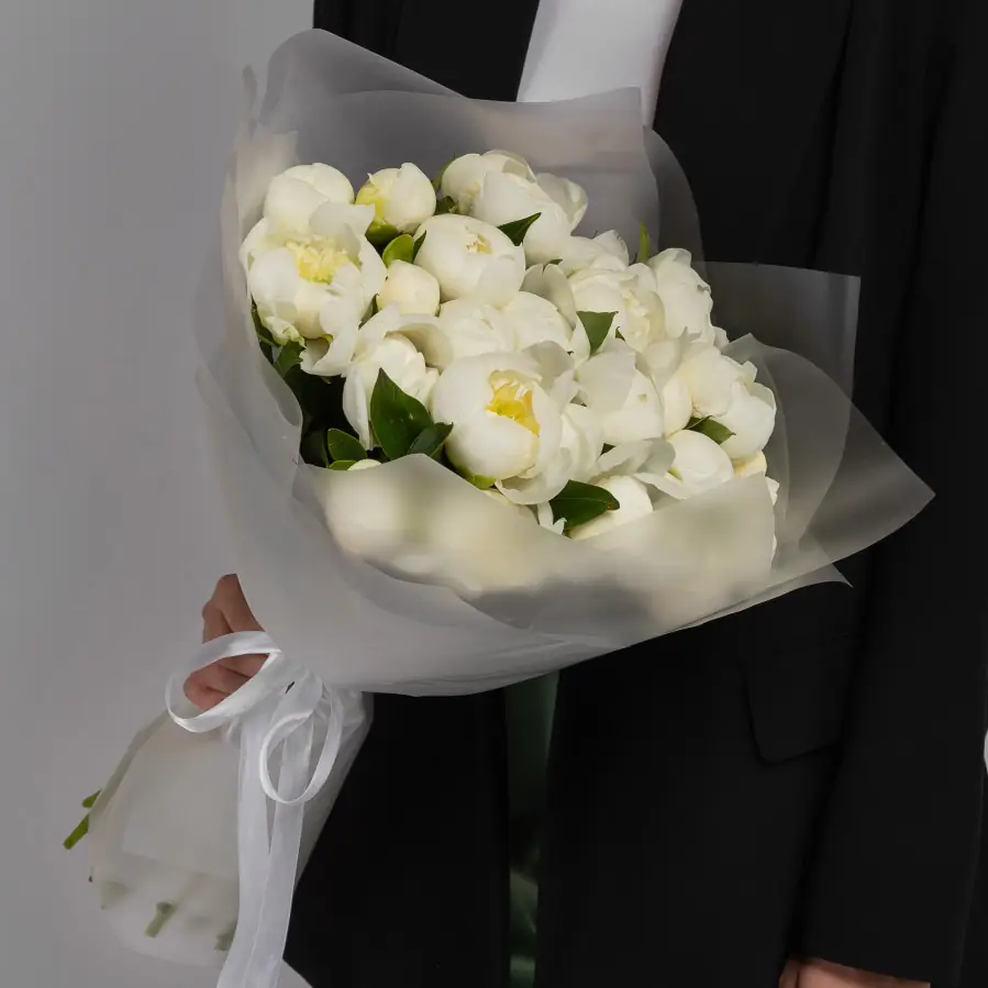 25 Светлых Пионов в упаковке — купить по цене от 17500 руб. с доставкой в Дзержинске