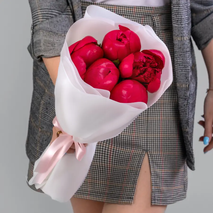 5 Малиновых Пионов в упаковке — отличный выбор для подарка! На сайте вы найдете красочные фотографии, которые помогут сделать выбор. Цена букета — 3650 руб.. Закажите 5 Малиновых Пионов в упаковке с доставкой в Дзержинске и по области.