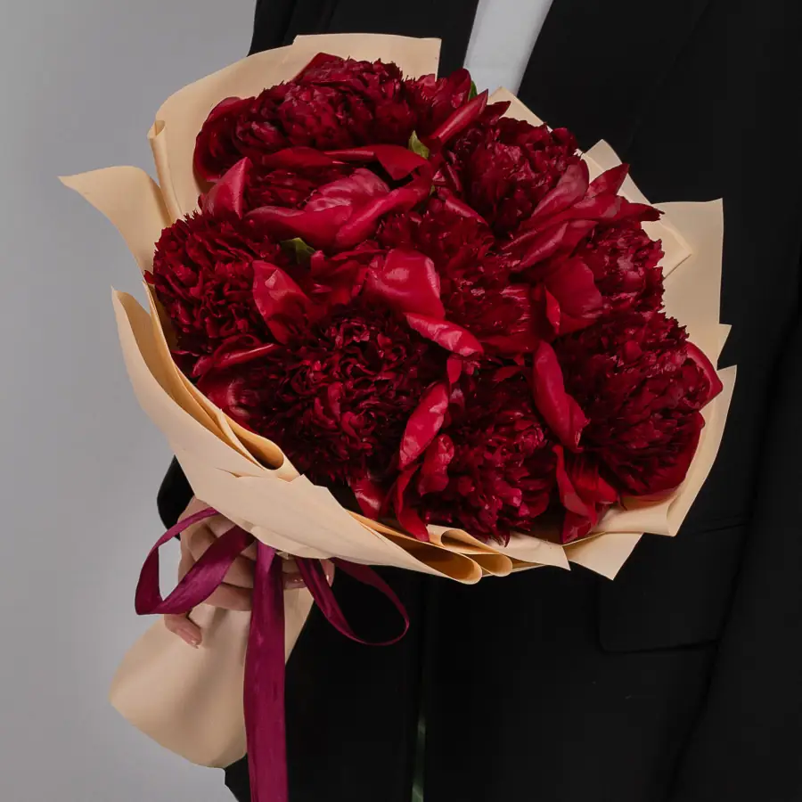 9 Красных Пионов в упаковке — купить по цене от 7040 руб. с доставкой в Дзержинске