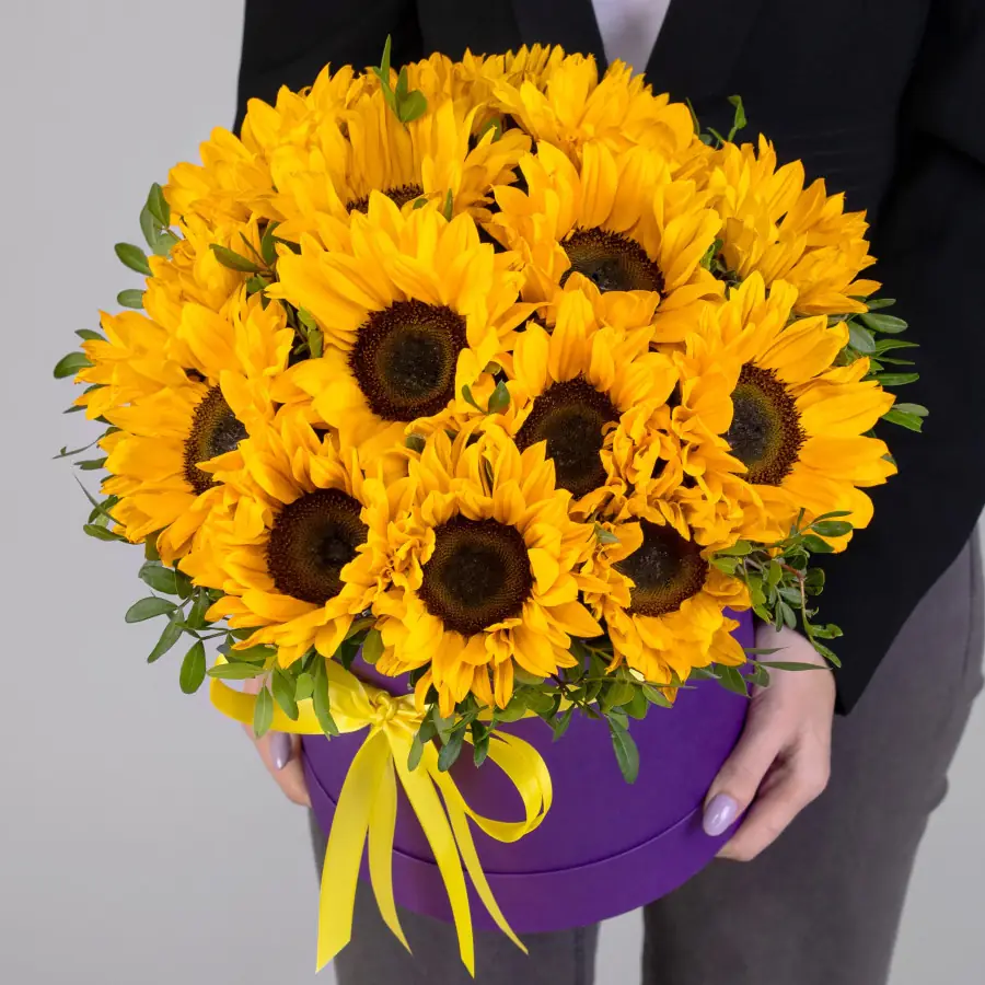 15 Подсолнухов в коробке — отличный выбор для подарка! На сайте вы найдете красочные фотографии, которые помогут сделать выбор. Цена букета — 5775 руб.. Закажите 15 Подсолнухов в коробке с доставкой в Дзержинске и по области.