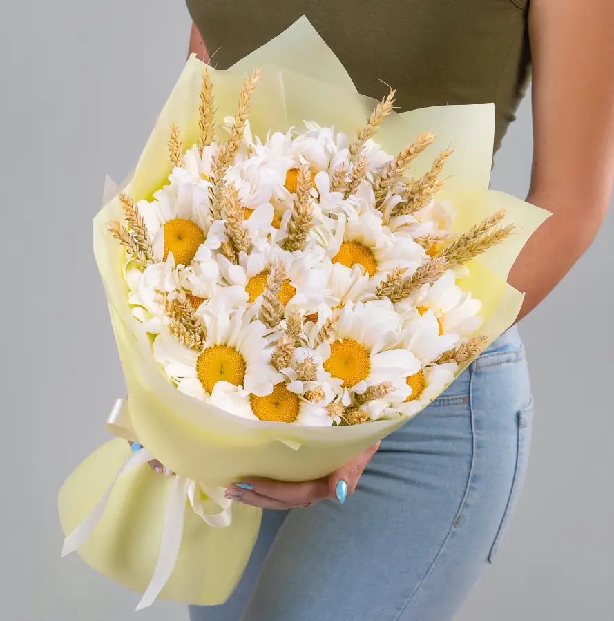 11 Крупных Ромашек с пшеницей в упаковке — купить по цене от 3781 руб. с доставкой в Дзержинске
