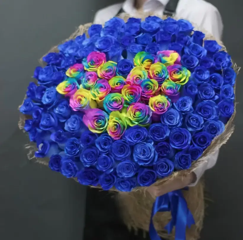 У нас можно заказать 101 Синяя и Радужная Роза сердце за 41300 руб.