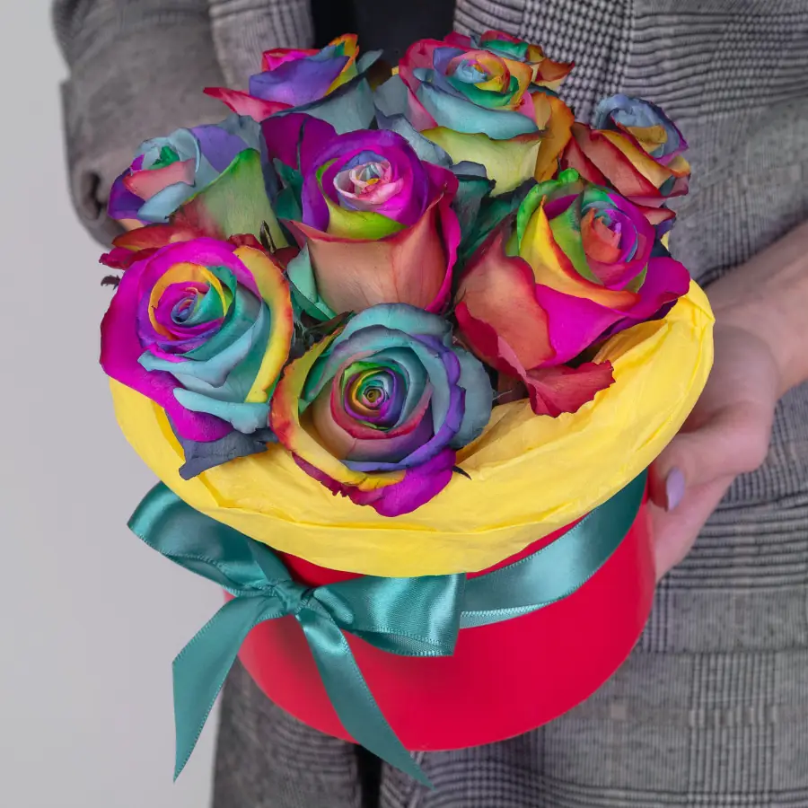 9 Радужных Роз в коробке — купить по цене от 4250 руб. с доставкой в Дзержинске