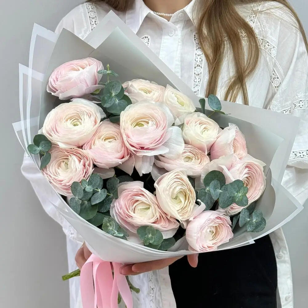 Композиция из ранункулюсов с эвкалиптом — купить по цене от 6150 руб. с доставкой в Дзержинске