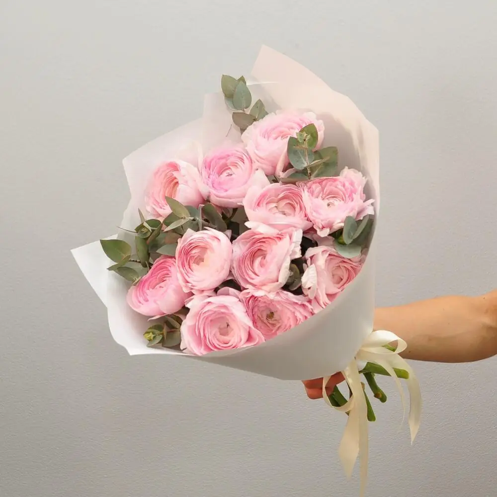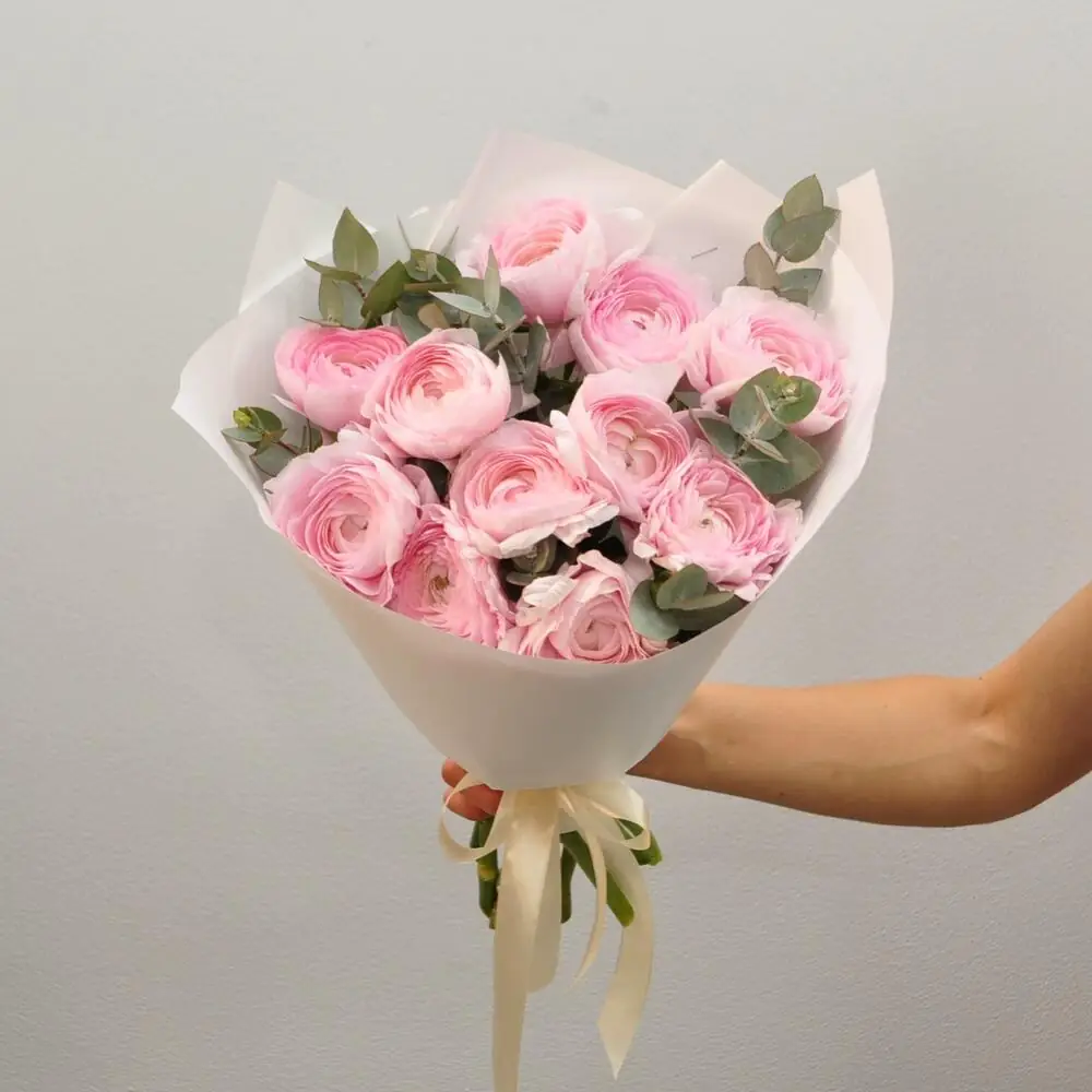 Нежные ранункулюсы с эвкалиптом — купить по цене от 5190 руб. с доставкой в Дзержинске
