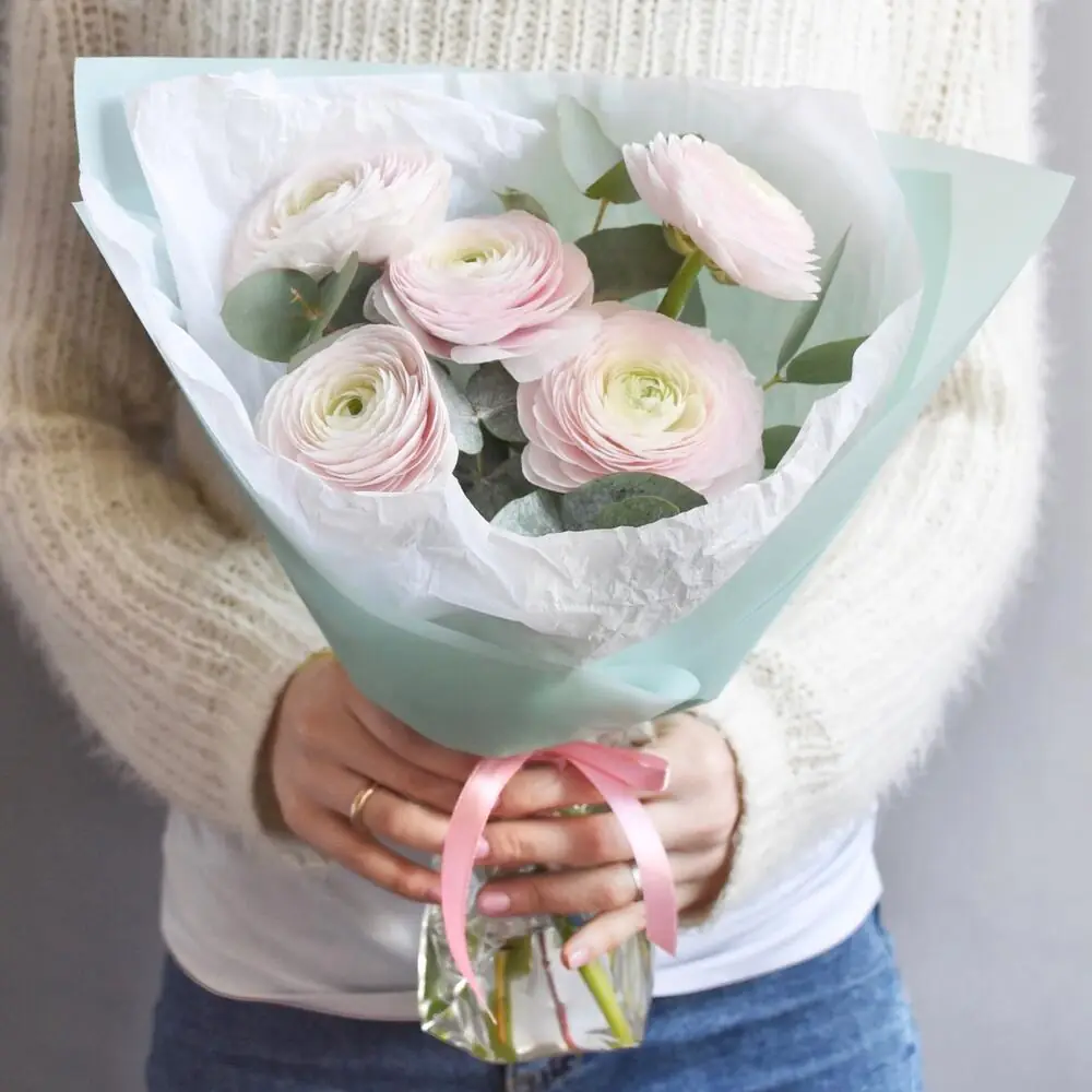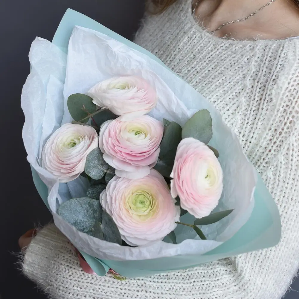 Ранункулюсы с эвкалиптом 5 шт — купить по цене от 2450 руб. с доставкой в Дзержинске