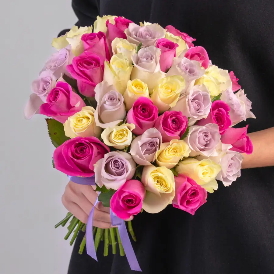 45 Бело-Розово-Сиреневых Роз 40 см — купить по цене от 5705 руб. с доставкой в Дзержинске