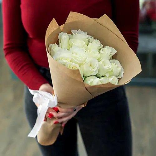 Белая роза Кения 40 см -15 шт