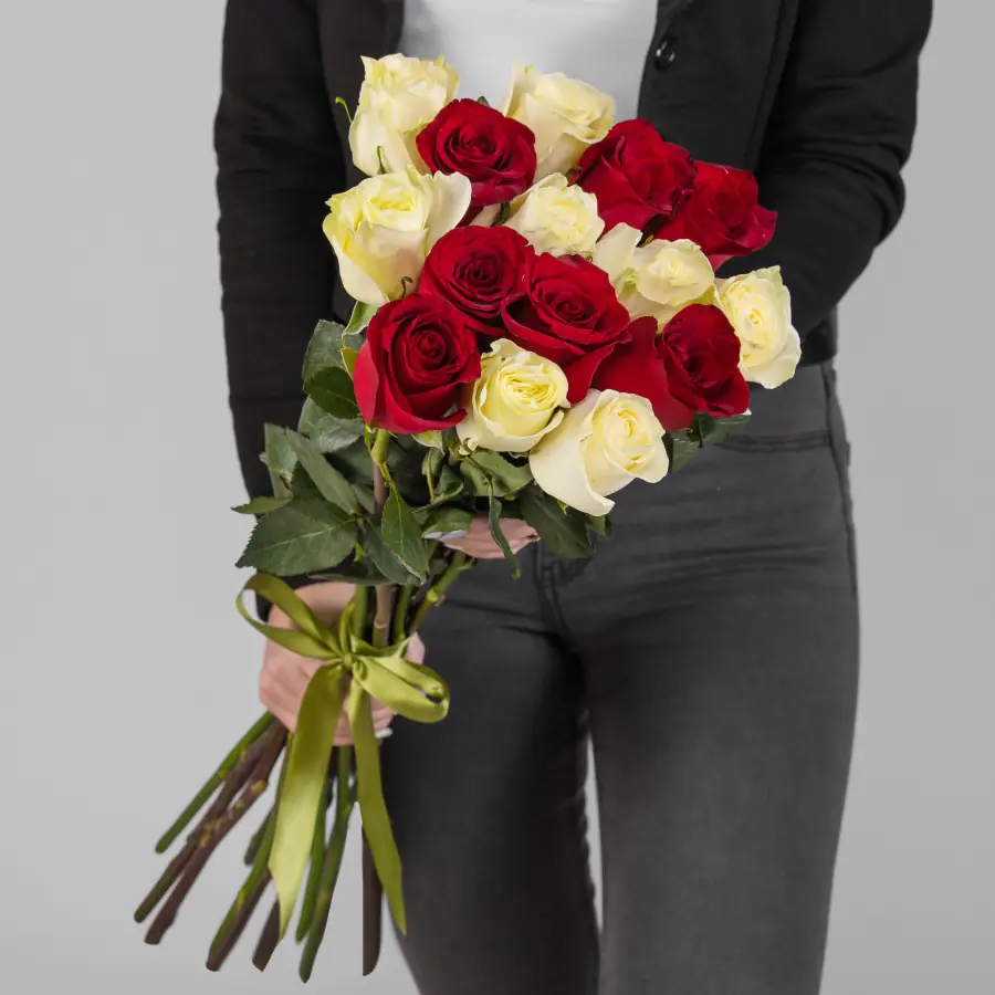 Букет из 15 Красно-Белых Роз — купить по цене от 4100 руб. с доставкой в Дзержинске