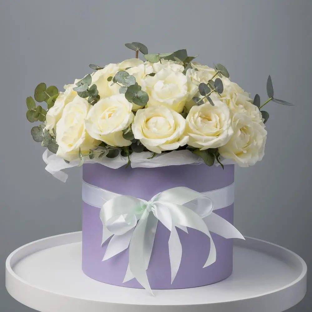 Белая роза в шляпной коробке — купить с доставкой в Дзержинске