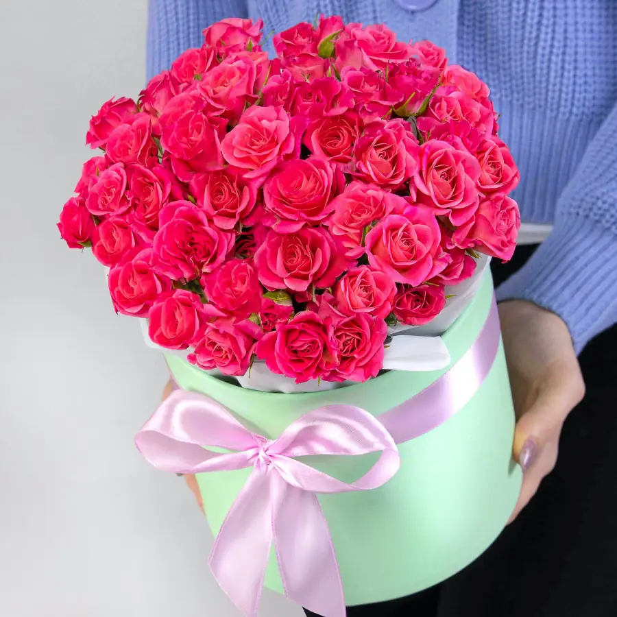Коробка с цветами ярких розовых роз — купить с доставкой в Дзержинске