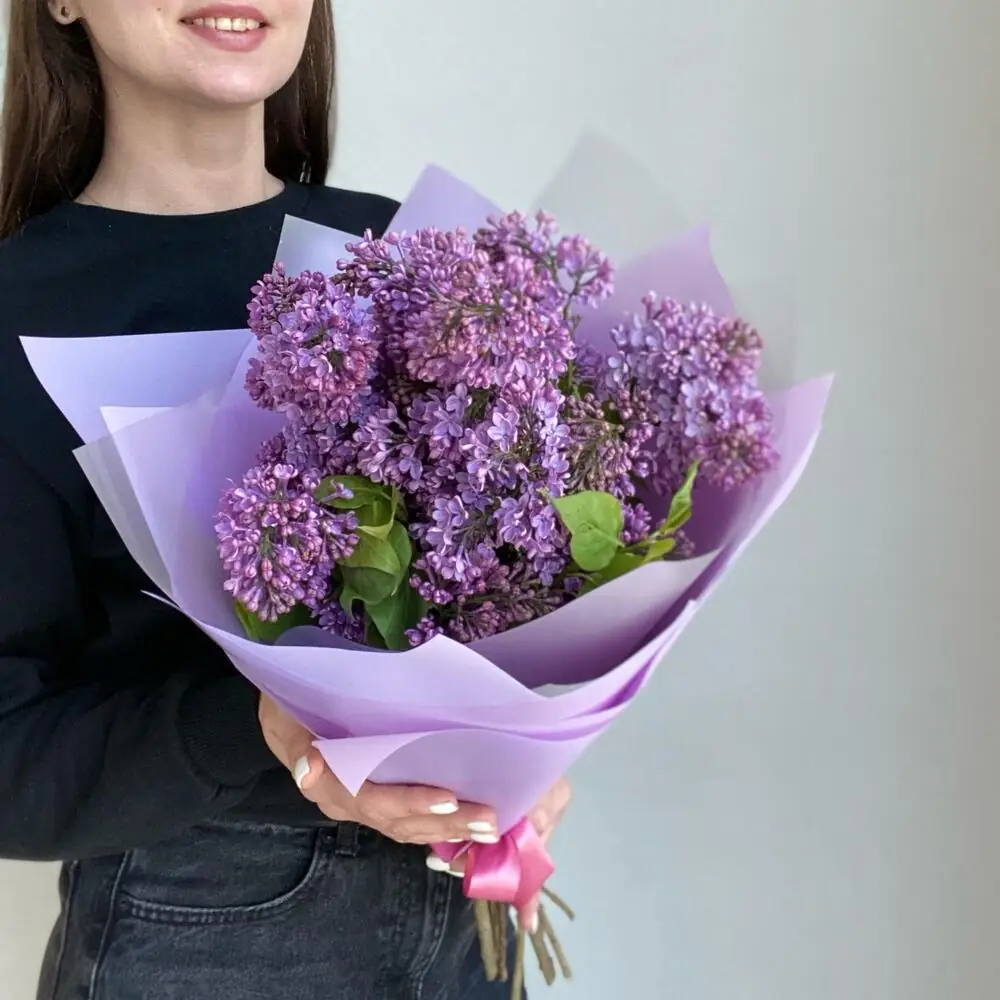 Композиция 5 веток сирени в дизайнерской упаковке — купить по цене от 3600 руб. с доставкой в Дзержинске
