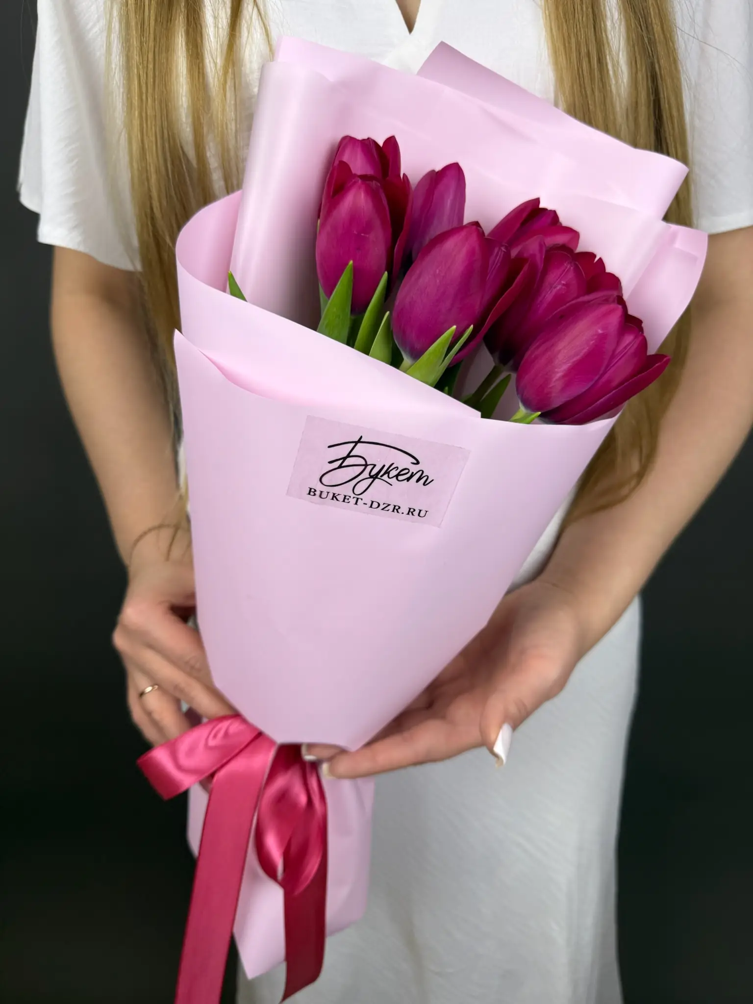 7 Малиновых Тюльпанов в упаковке — купить по цене от 1490 руб. с доставкой в Дзержинске