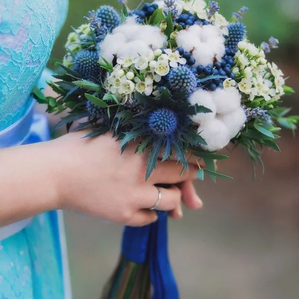 Закажите Букет невесты с хлопком и эрингиумом с доставкой Дзержинске и по области