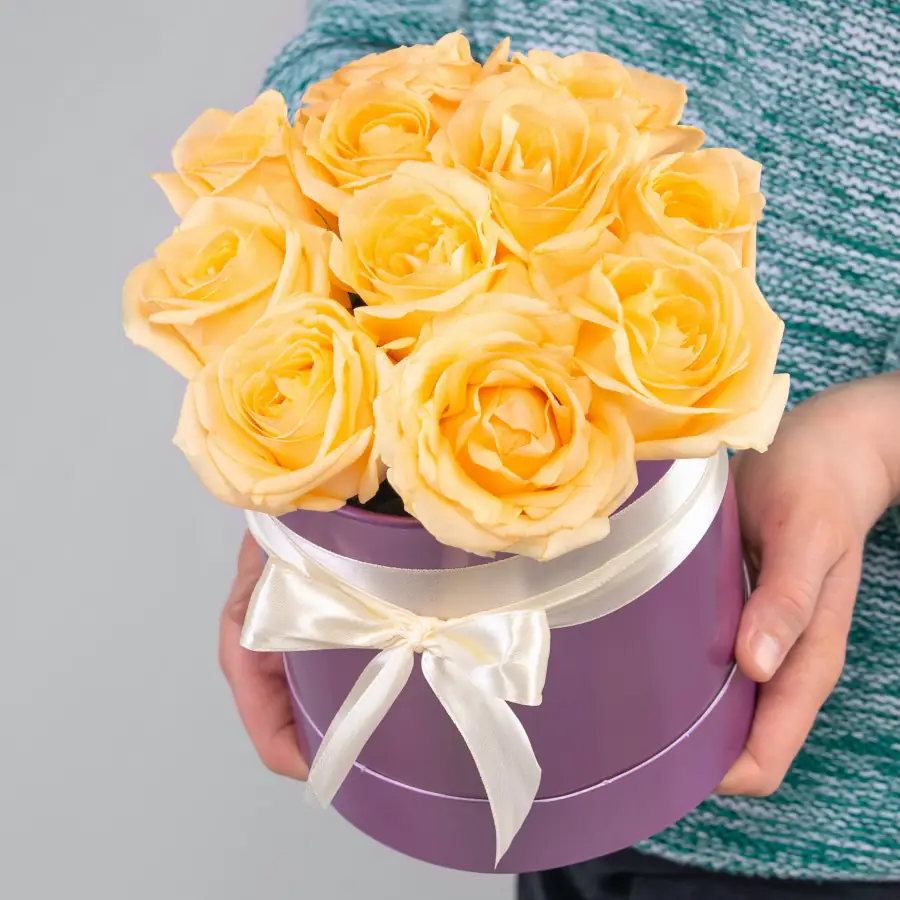 На фото - 15 Кремовых Роз в коробке . В составе данной композиции: Роза Эквадор персикового цвета - 15 шт, Флористическая губка, Лента атласная. На сайте buket-dzr.ru Вы найдете большой выбор недорогих букетов, цветочных композиций и корзин цветов для любого повода. У нас можно заказать 15 Кремовых Роз в коробке за 4725 руб. с доставкой Дзержинске и по области