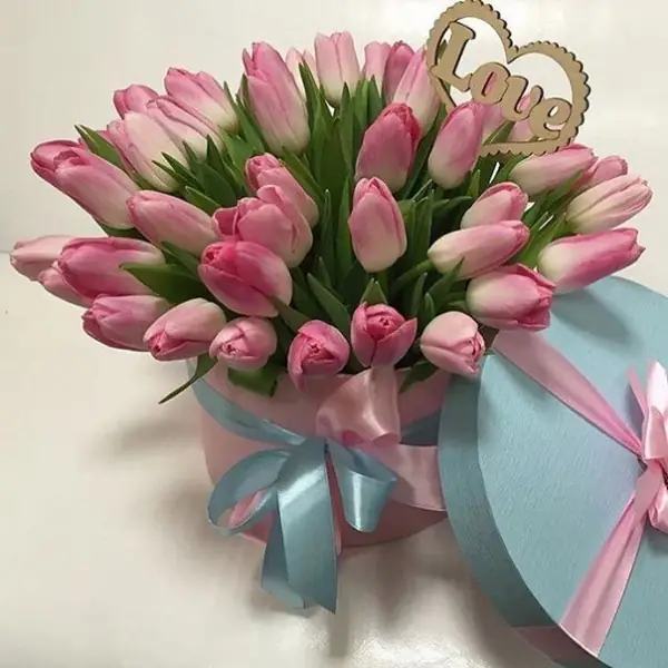 У нас можно заказать Розовые Тюльпаны в коробке - 25 шт за 6325 руб. с доставкой Дзержинске и по области