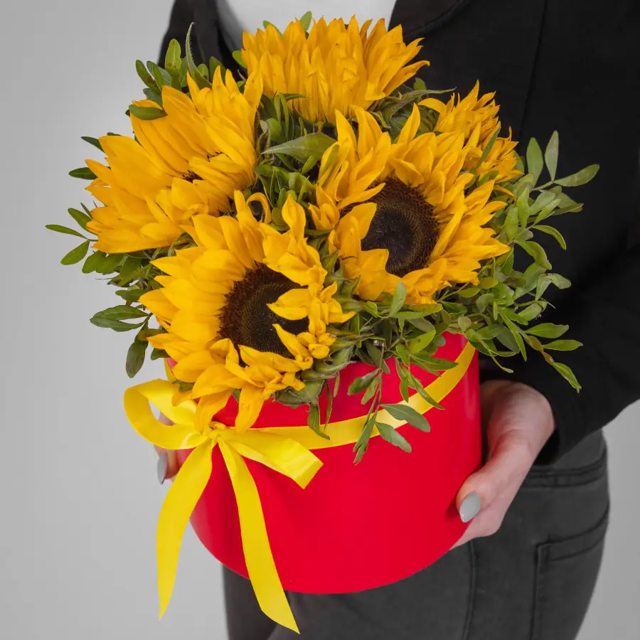 У нас можно заказать 5 Подсолнухов в коробке за 2625 руб. с доставкой Дзержинске и по области