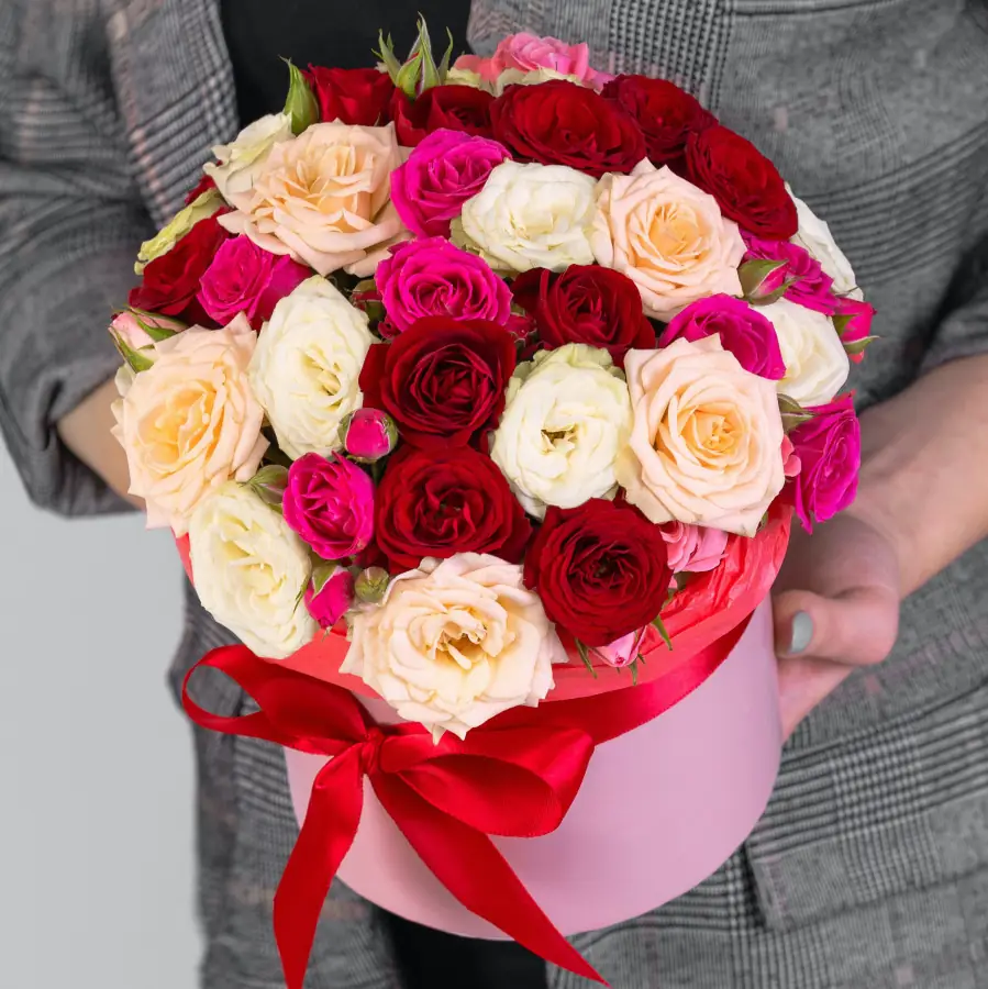 У нас можно заказать Розы пионовидные микс в шляпной коробке за 3450 руб. с доставкой Дзержинске и по области