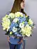 На фото - Голубая композиция с гортензией и розами . В составе данной композиции: Гортензия - 2 шт,