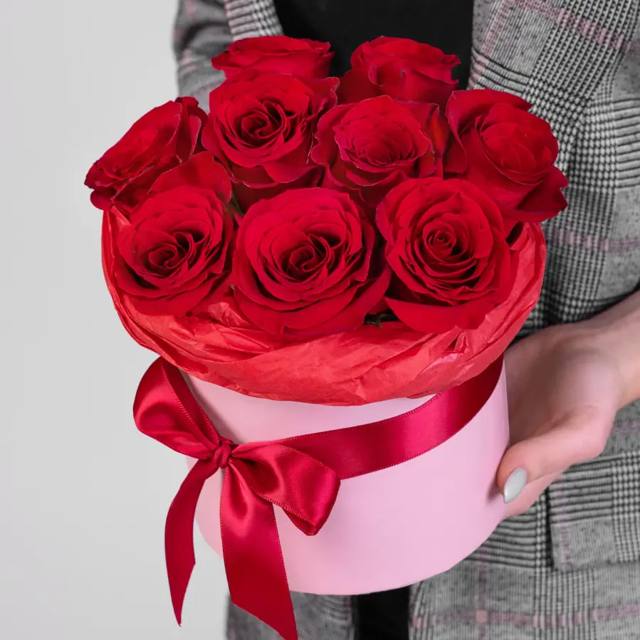 На фото - Композиция с красными розами . В составе данной композиции: Роза Эквадор - 9 шт,