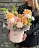 На фото - Композиция в коробке с гортензией и розой . В составе данной композиции: Гортензия - 1 шт,