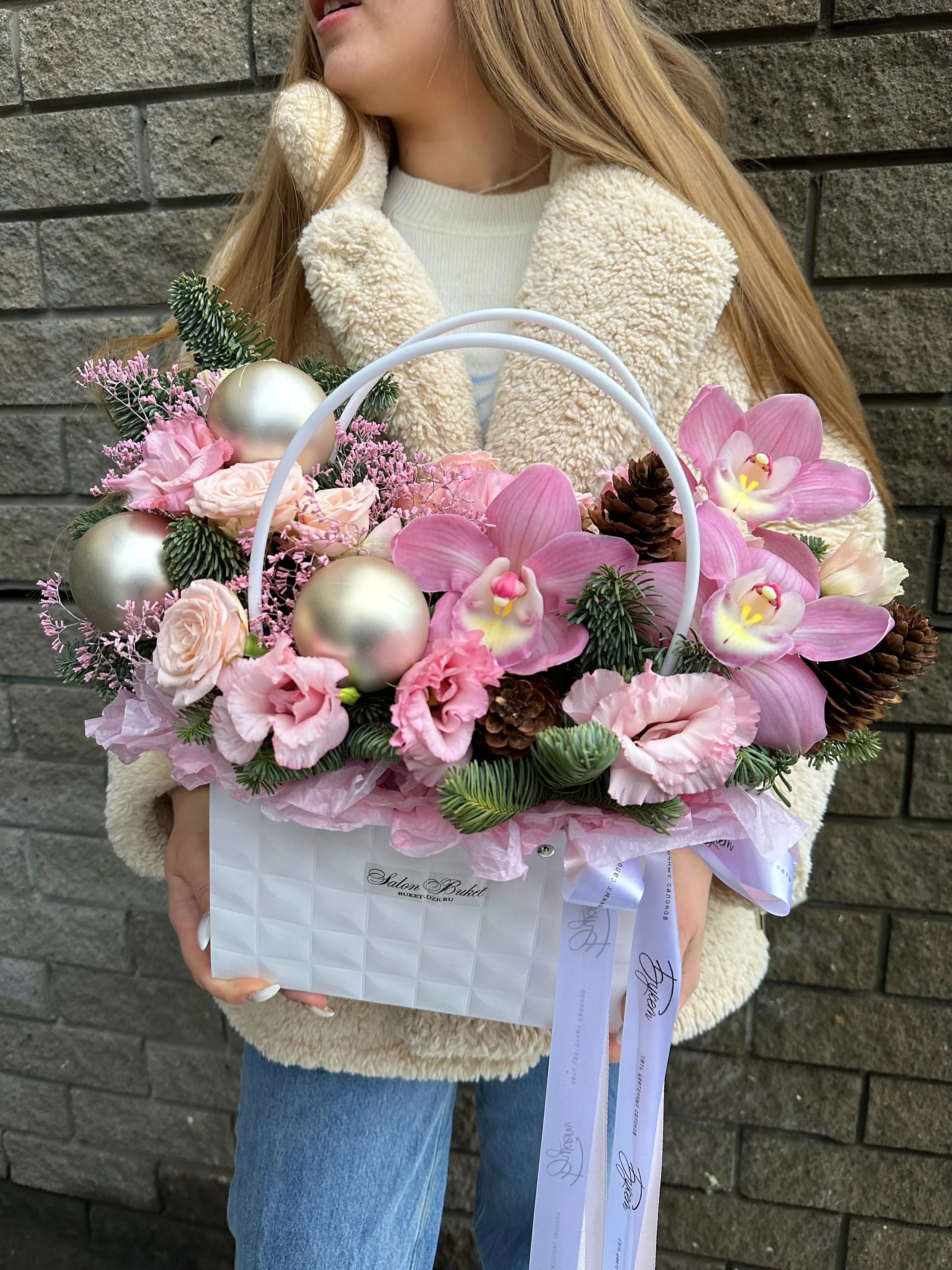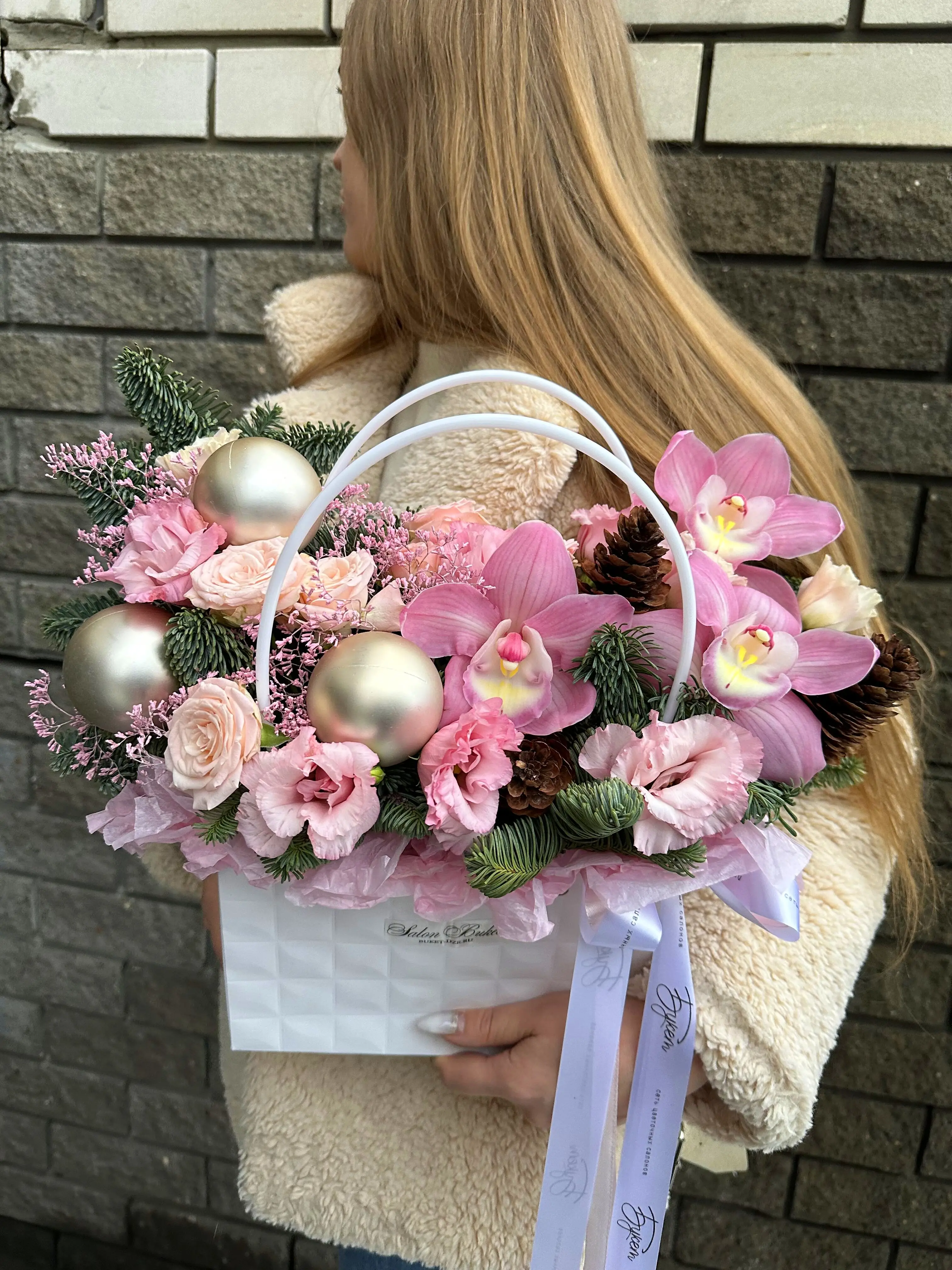 На фото - Зимняя сумка с орхидеями . В составе данной композиции: Орхидея - 3 шт,