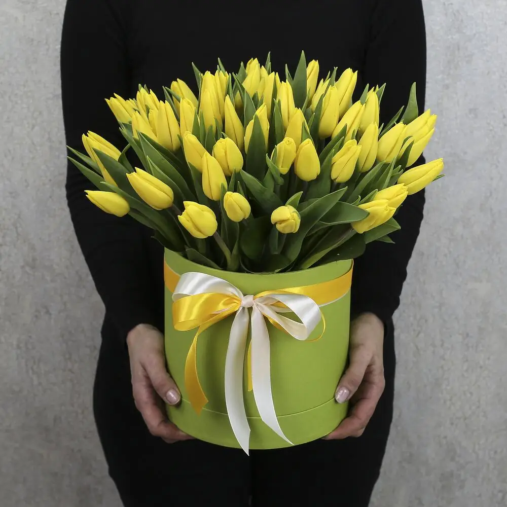 На фото - Композиция из 51 жёлтого тюльпана . В составе данной композиции: Тюльпан - 51 шт,