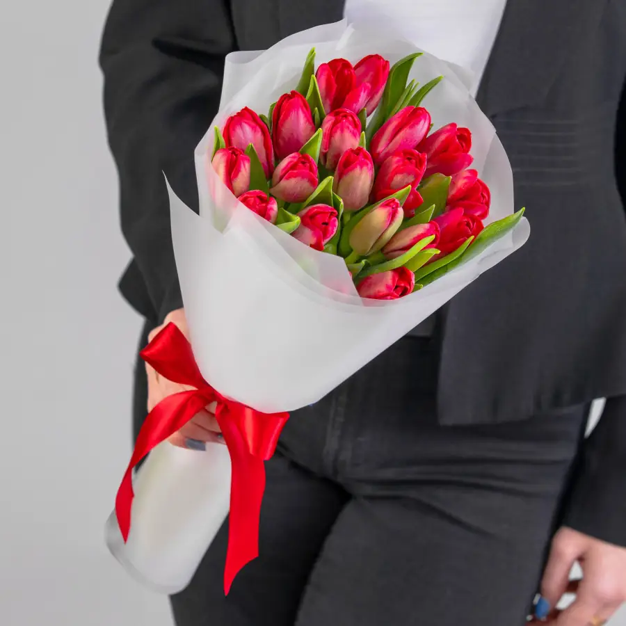 Букет Пионовидных рубиновых тюльпанов 19 шт — купить по цене от 4990 руб. с доставкой в Дзержинске