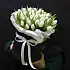 На фото - Композиция снежный тюльпан в шляпной черной коробке. В составе данной композиции: Тюльпан - 49 шт,
