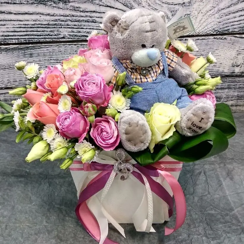 У нас можно заказать Букет нежное признание “С мишкой” за 5819 руб. с доставкой Дзержинске и по области