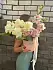 На фото - Коробка с розами и розовой гортензией . В составе данной композиции: Гортензия - 2 шт,