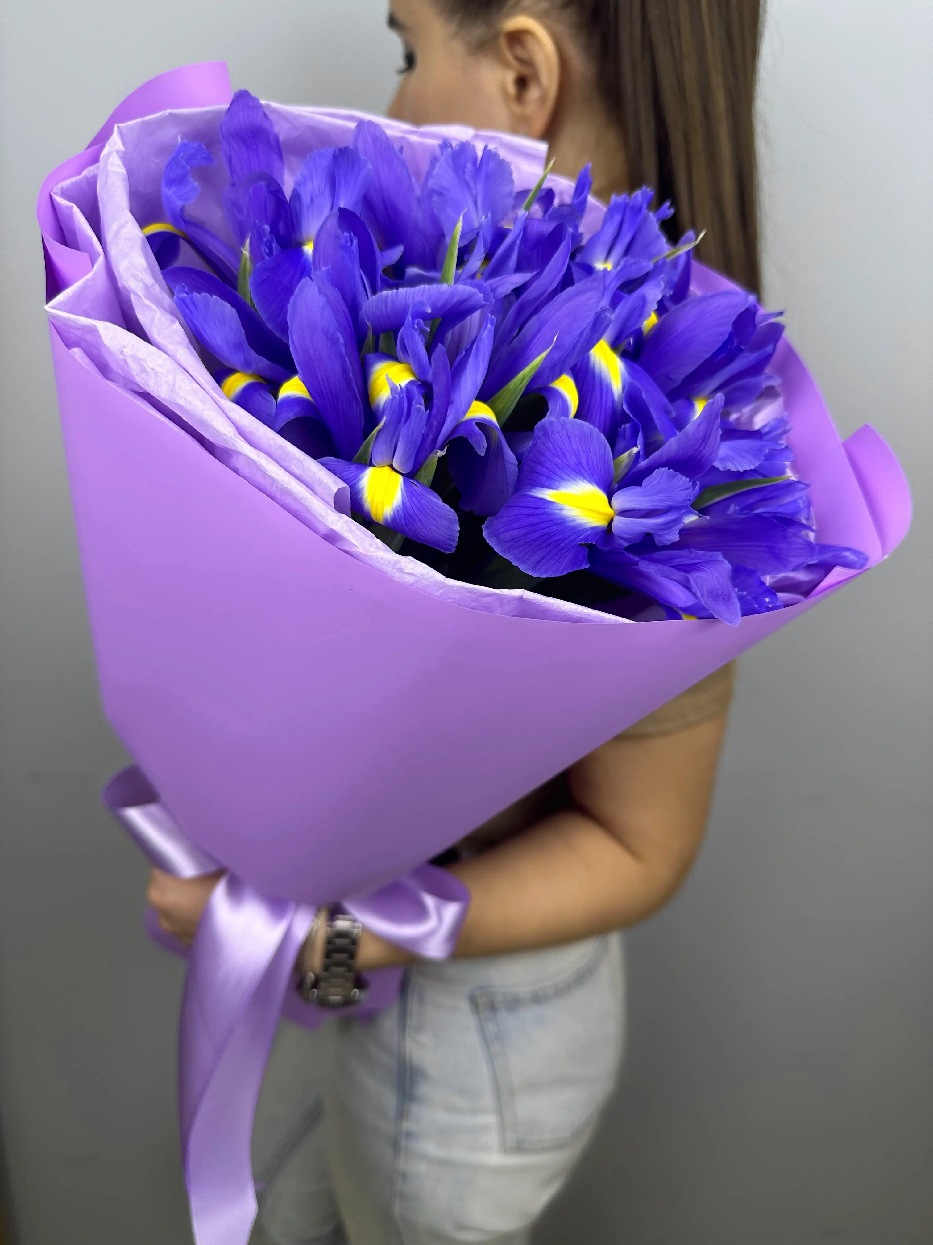 Букет состоит из 11 фиолетовых ирисов, собранных на стеблях. Ирисы – символ любви, нежности и гармонии, они добавят в ваш подарок нотку изысканности и утонченности.