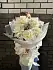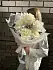 Букет состоит из 5 пионовидных роз белого цвета, дополненных 4 ветками эвкалипта и 1 иглицей.