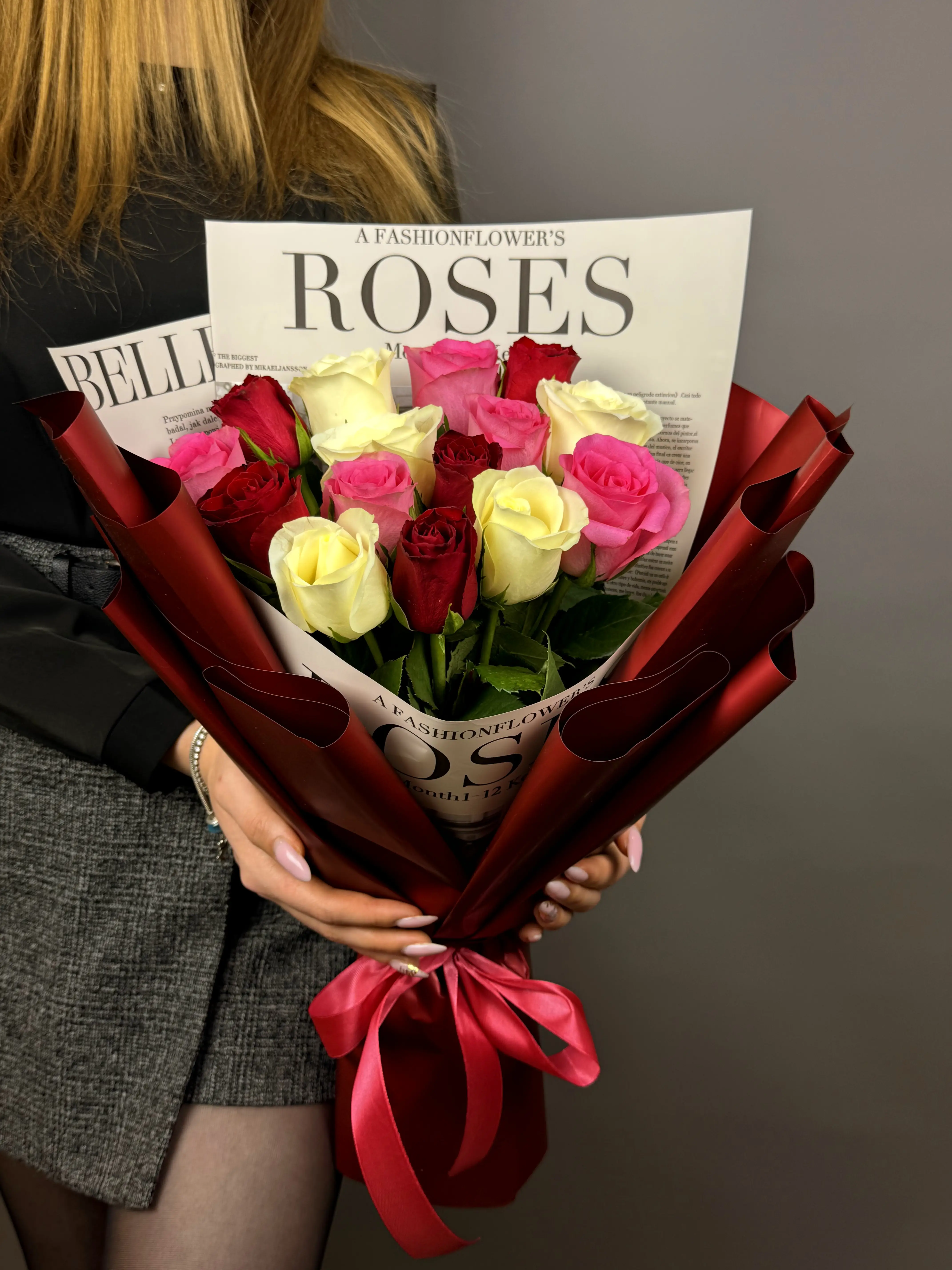 Подарите себе и своим любимым частичку природы и красоты с этим потрясающим букетом из 15 роз микс!