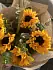 Букет живых цветов из 5 подсолнухов, оформленный в дизайнерскую упаковку, станет прекрасным подарком для любого повода.