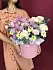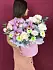 Шляпная коробка, в которую упакован букет, придает ему еще больше шарма и элегантности. Она не только служит надежной упаковкой, но и является стильным элементом декора, который подчеркивает изысканность и утонченность подарка.