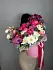 Букет оформлен в стильной шляпной коробке, что делает его еще более привлекательным и удобным для транспортировки.