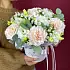 Букет составляется непосредственно в день доставки из свежих цветов, а затем с приятной улыбкой вручается адресату.