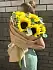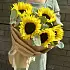 Букет живых цветов из 5 Подсолнухов в дизайнерской крафтовой бумаге