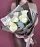 Букет живых цветов из 7 белых роз с эвкалиптом в дизайнерской упаковке