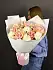 Нежный Букет живых цветов из белых диантусов и розовых роз в упаковке