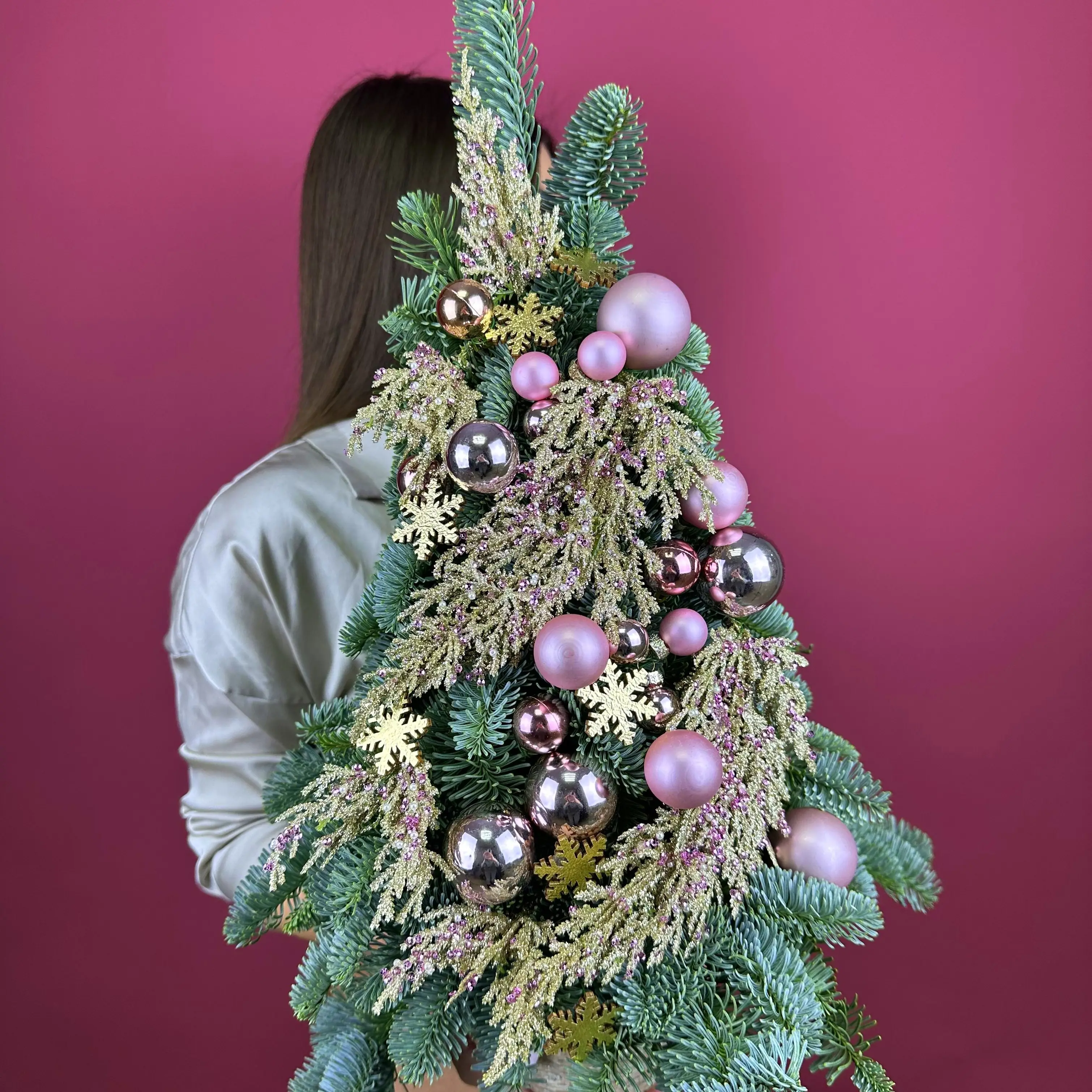 Цветы живые Композиция с нобилисом и декором "Новогодняя елка"