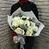 Букет живых цветов из 11 роз Эквадор с эвкалиптом в дизайнерской упаковке
