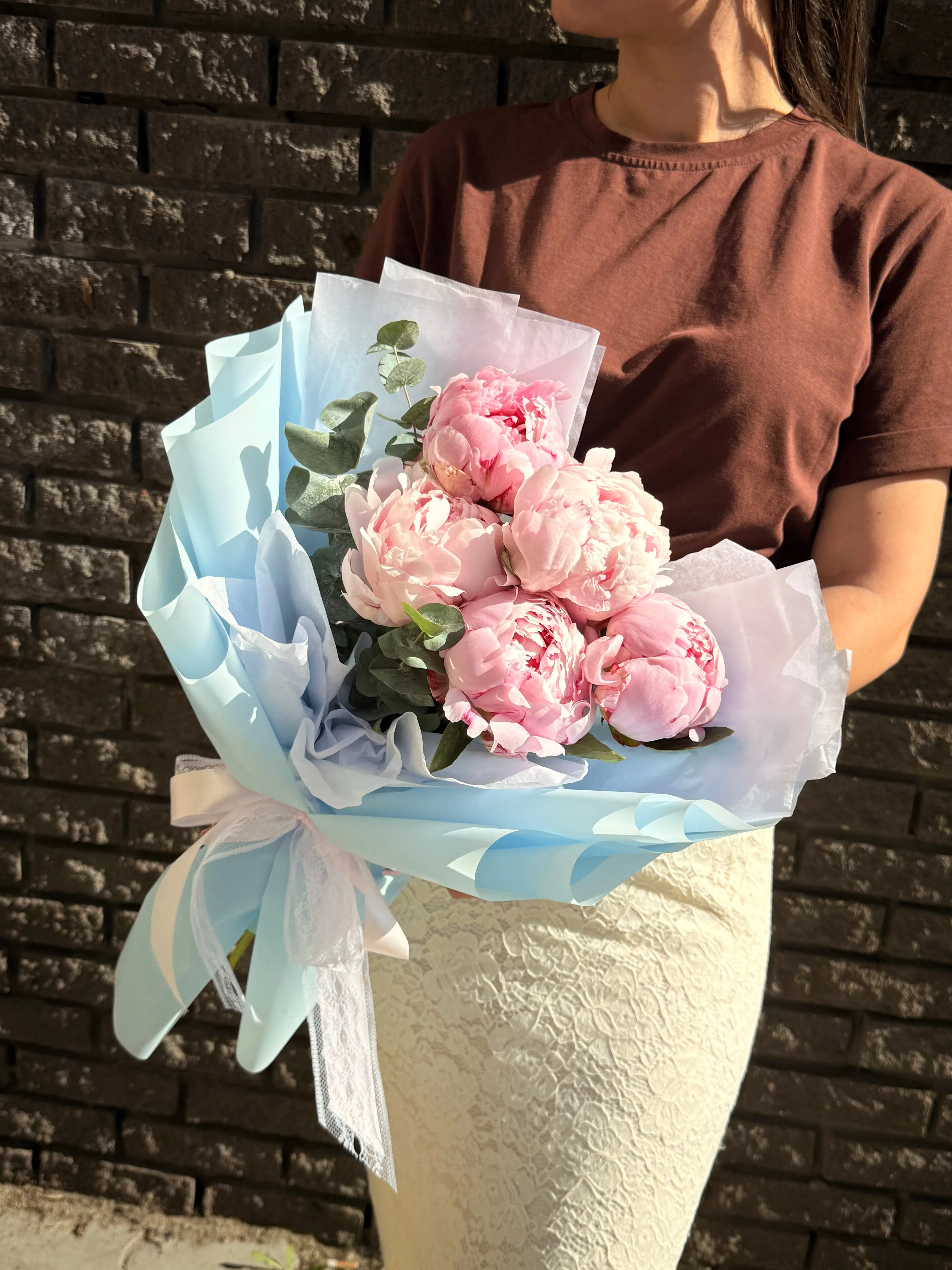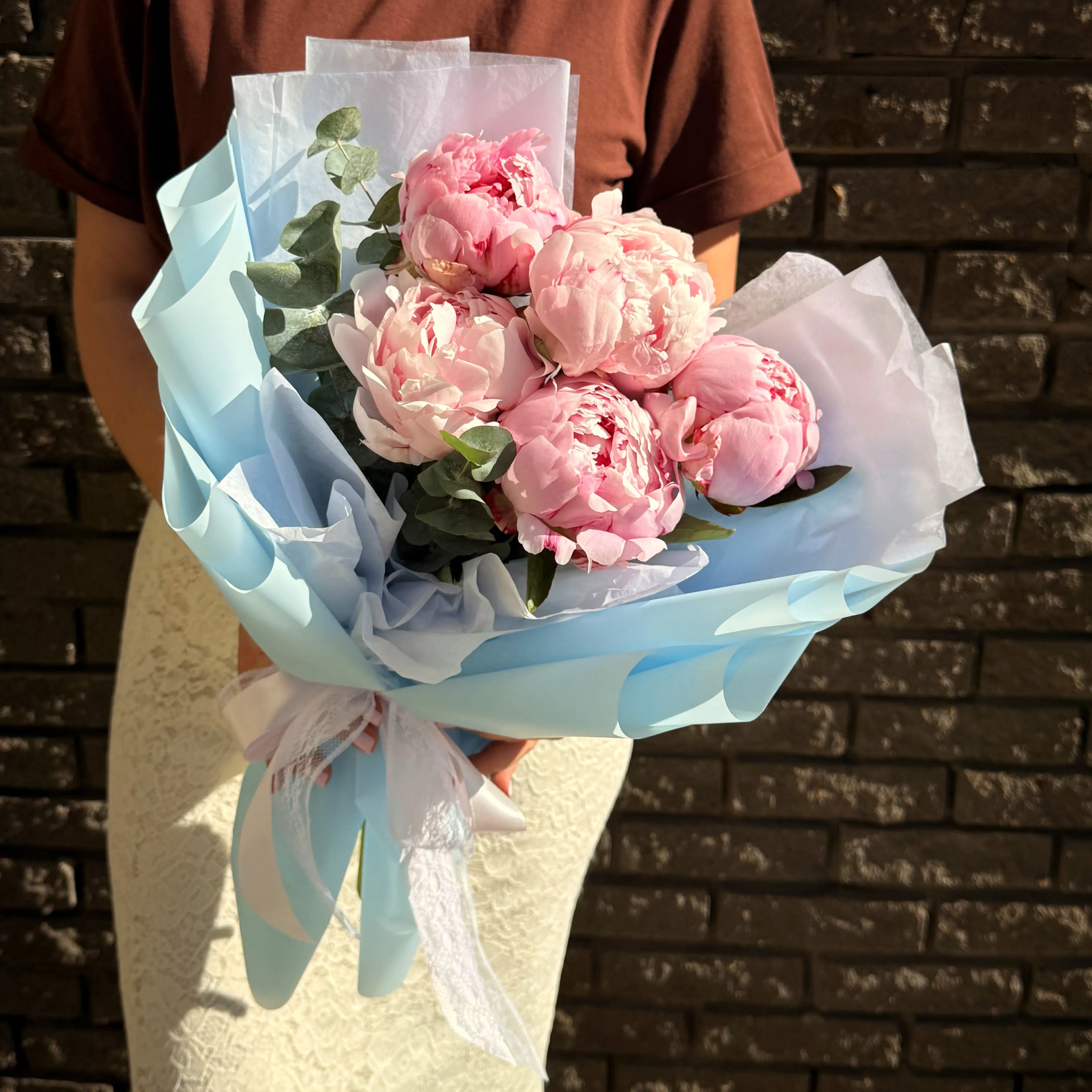 Букет живых цветов из 5 Пионов оформленный в крафтовую бумагу — купить по цене от 4201 руб. с доставкой в Дзержинске