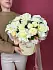 Букет с белыми французскими розами и хризантемой в шляпной коробке — купить по цене от 3204 руб. с доставкой в Дзержинске